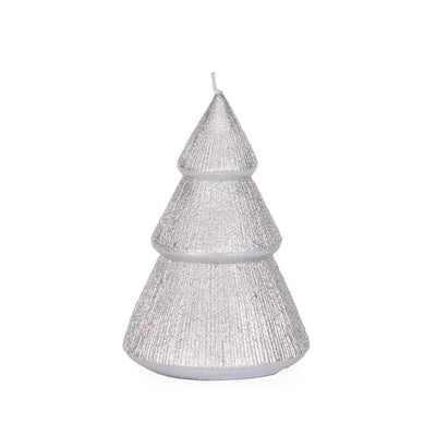 Holly and Ivy Silver Ribbed Tree Candle 11 cm